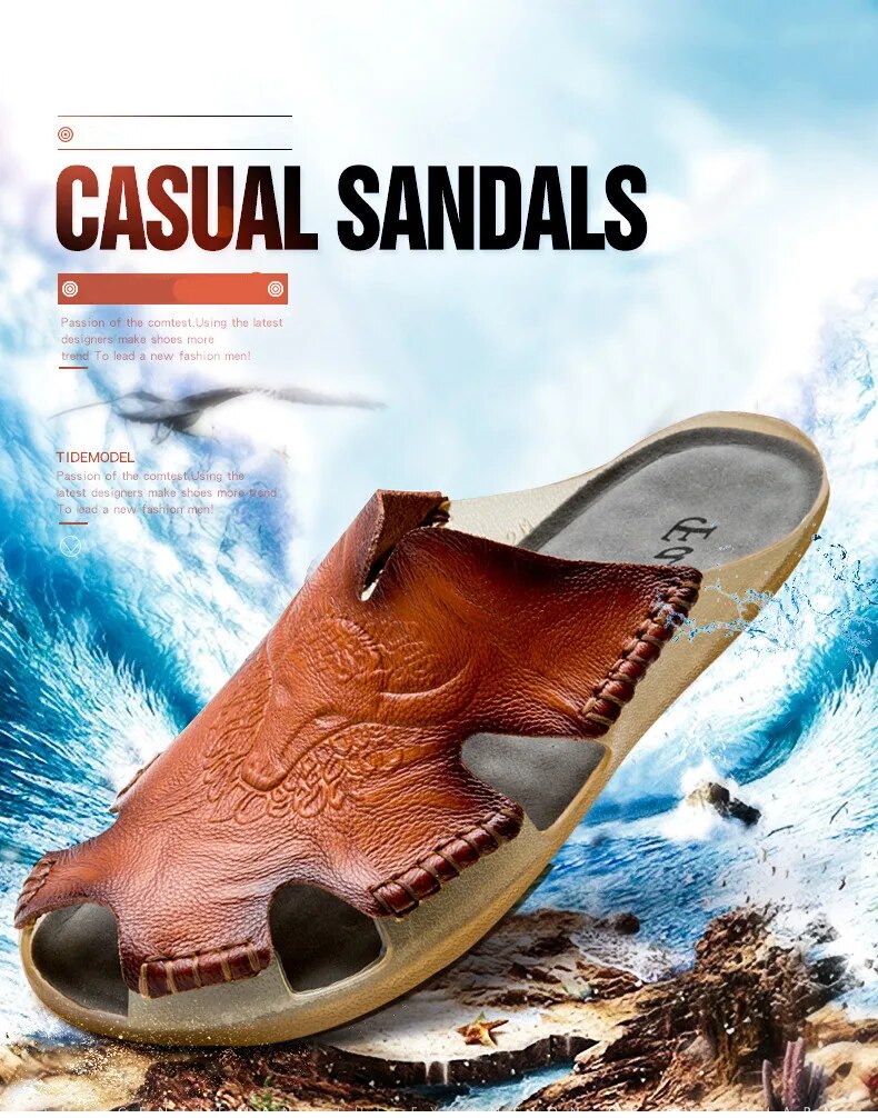 Men's Leather Beach Sandals - Non-Slip, Comfortable, Summer Shoes - FREE SHIPPING